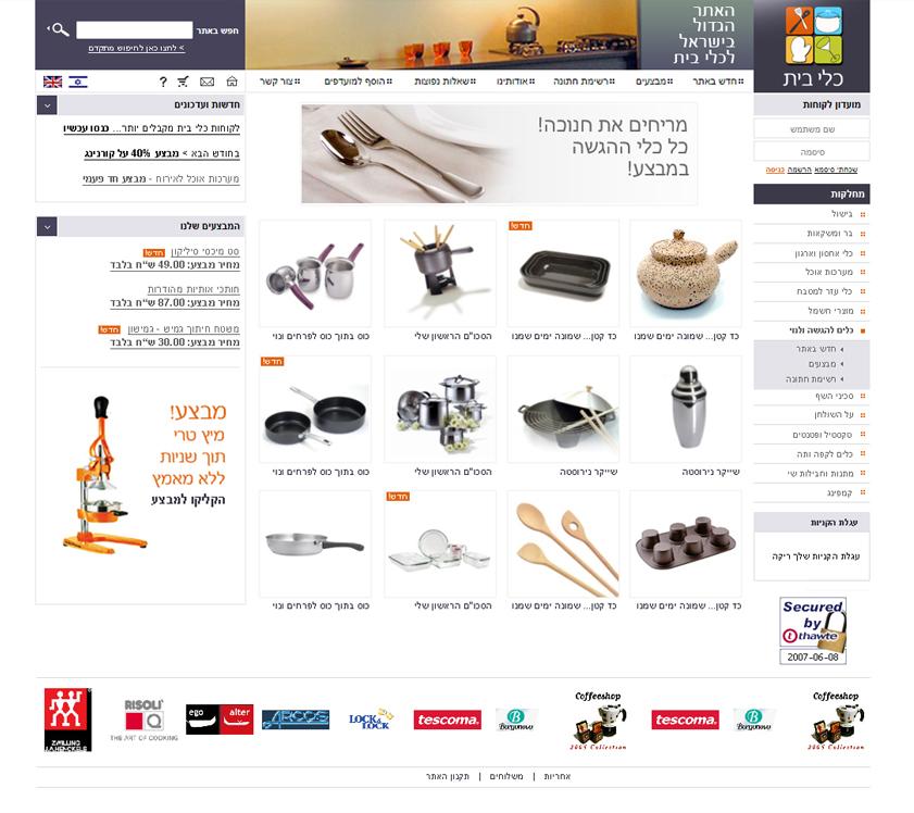 כלי בית זוהי החנות הוירטואלית הגדולה ביותר והמצליחה ביותר בישראל לכלי בית. בחנו רבות את השוק והגענו למסקנה כי יש ריבוי מוצרים בכל חנות אינטרנטית שכזו ולכן שמנו דגש על ניקיון המותג, קריאות וחוויית משתמש נוחה.