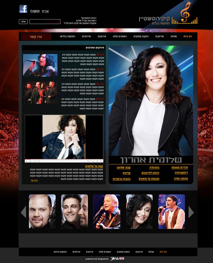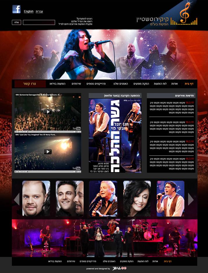 >> דף הבית של קיקי נראה כלוח מודעות של מוזיקה, נורא קל לנווט בו. חוויית הגלישה מעבירה את הגולש חוויה נוצצת ומרהיבה של הופעות ואירועים שונים, מה שמקנה לגולש את ההרגשה כי משרד ההפקות חי ובועט כל הזמן ואף תמיד מעודכן בתעשיית המוזיקה.